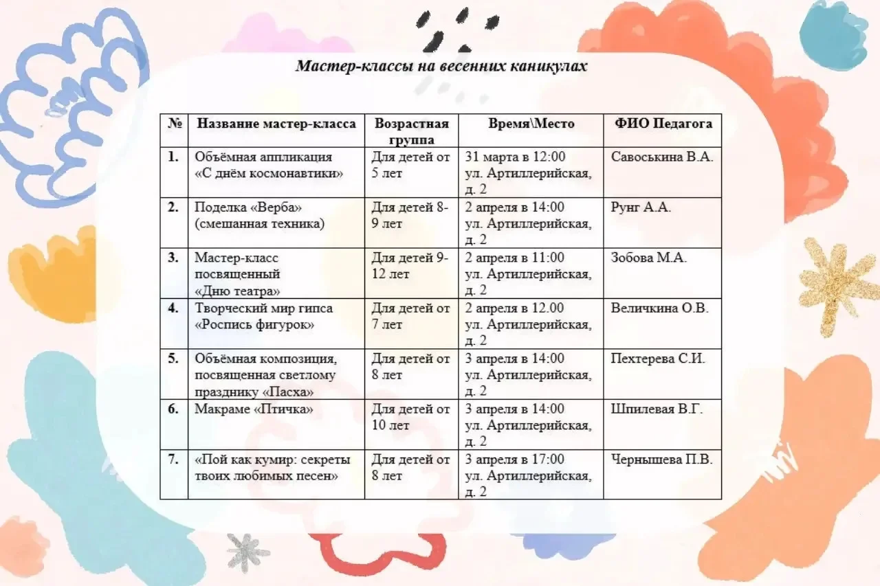 Друзья, весенние каникулы — время творить и пробовать новое! Детско-юношеский центр приглашает ребят на увлекательные мастер-классы.