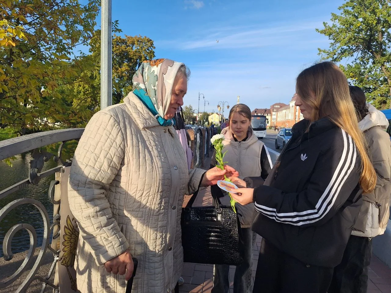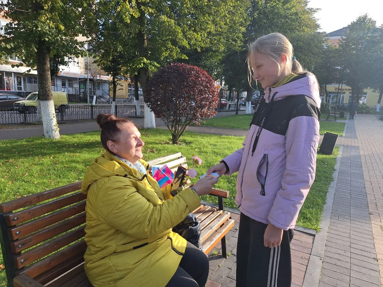 Ребята дарили прохожим не только яркие осенние цветы и открытки, но и позитивные эмоции, душевные объятия и тёплые пожелания всего наилучшего. Искренние улыбки и блеск в глазах пожилых людей — лучшая награда! Эта акция стала маленьким, но таким важным напоминанием о том, как просто подарить друг другу тепло и заботу.