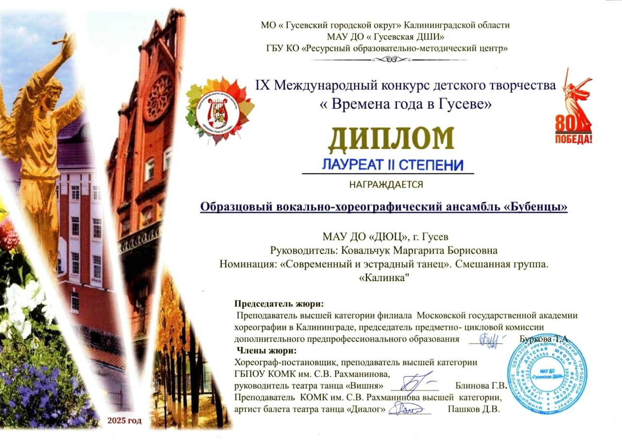 Среди многочисленных участников отличился Образцовый вокально-хореографический ансамбль «Бубенцы», под руководством Маргариты Борисовны Ковальчук. Ребята продемонстрировали свое мастерство и принесли ансамблю заслуженные награды.