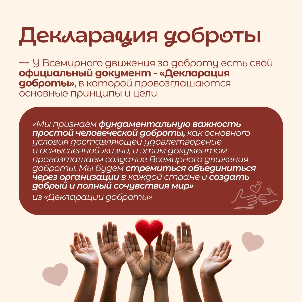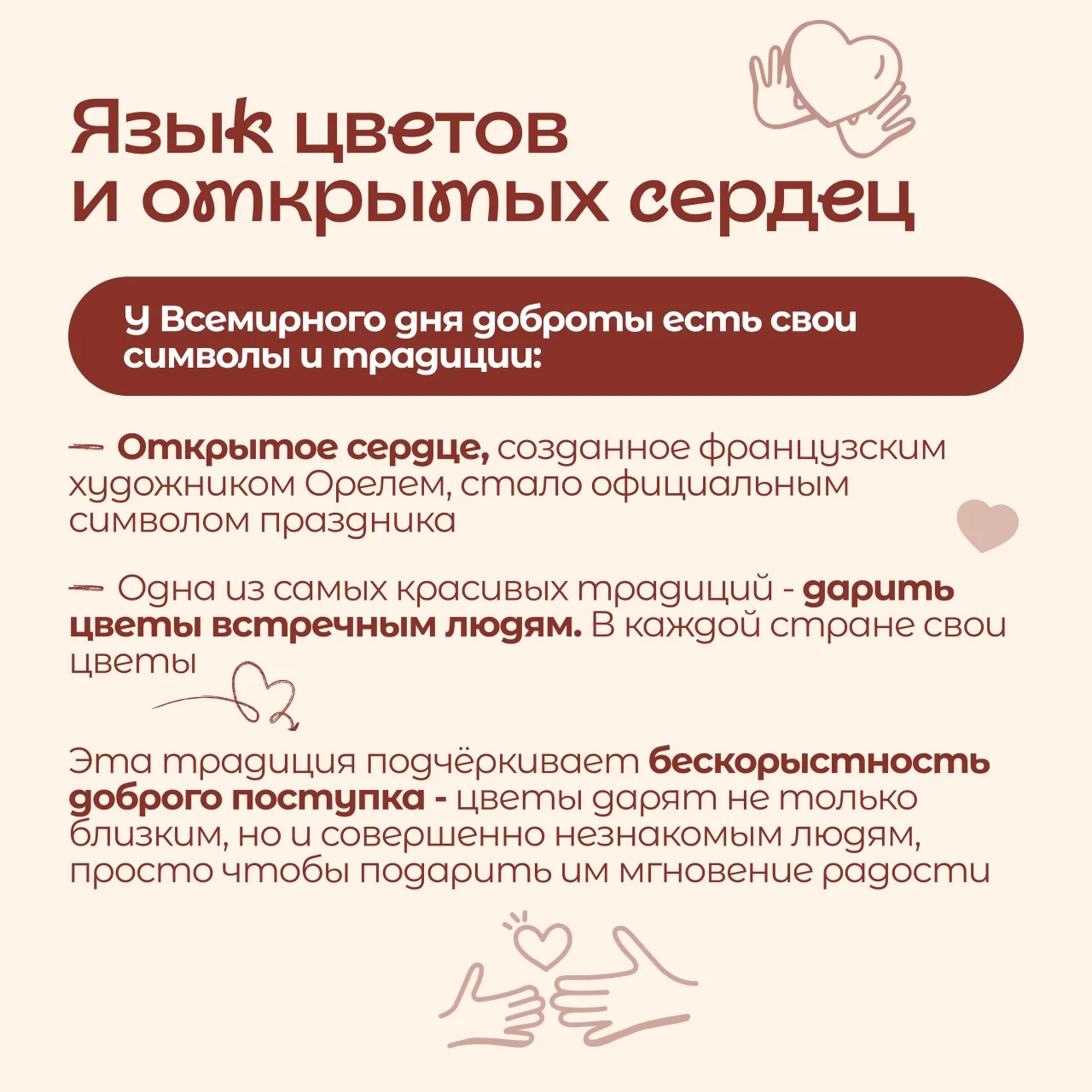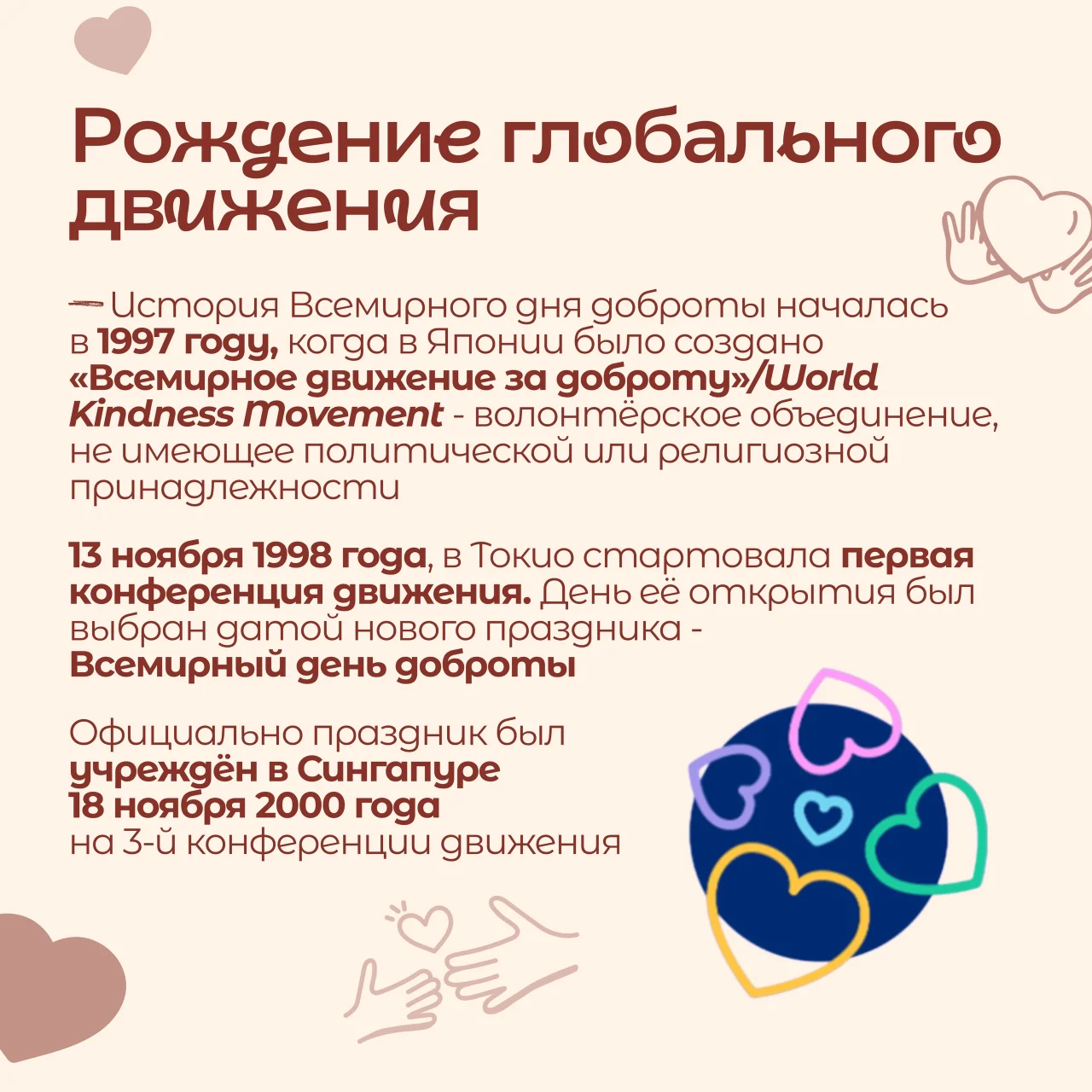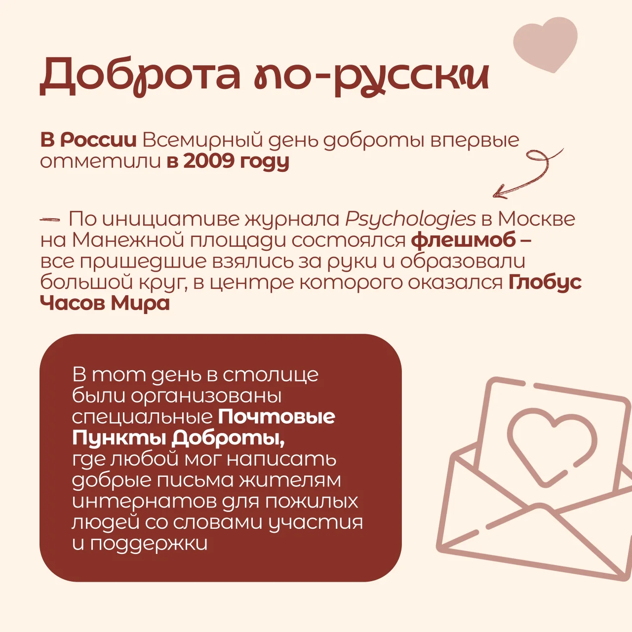 Давайте не только делать добрые дела, но и знать о них больше. Мы подготовили для вас карточки с фактами об этом дне. Заглядывайте, читайте и делитесь добром с другими!