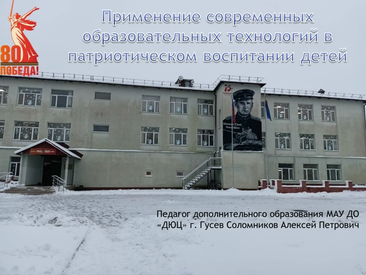 Педагог дополнительного образования МАУ ДО «ДЮЦ» г. Гусев А.П. Соломников представил актуальный педагогический опыт работы по дополнительной общеобразовательной общеразвивающей программе «Патриот» с применением дистанционных образовательных технологий в патриотическом воспитании.