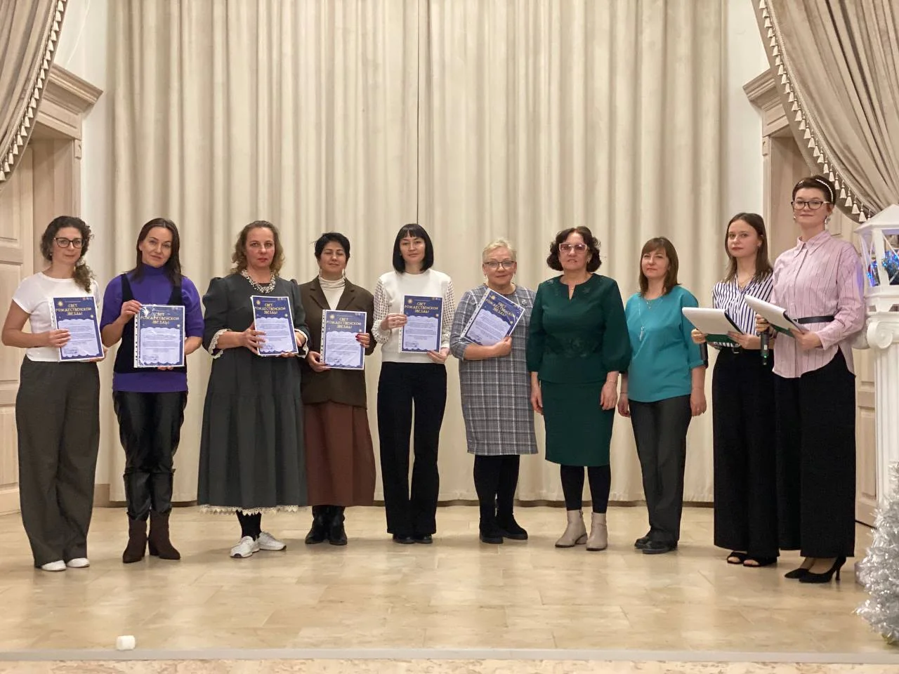 В рамках фестиваля представители и руководители образовательных организаций были награждены благодарственными письмами от фонда «Верю в чудо», дипломами за участие в выставке «Рождественский дар» и дипломами фестиваля «Сияние звезды»!