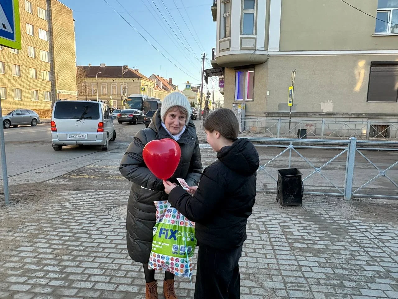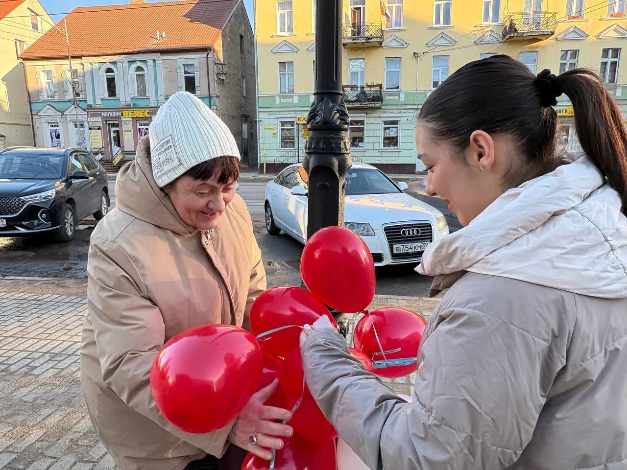 Добровольцы вышли на улицы города, чтобы поздравить женщин и девушек с 8 Марта. В рамках акции они вручали представительницам прекрасного пола памятные открытки, воздушные шары, дарили им улыбки и комплименты, а также желали солнечного настроения, любви, вдохновения и радости.