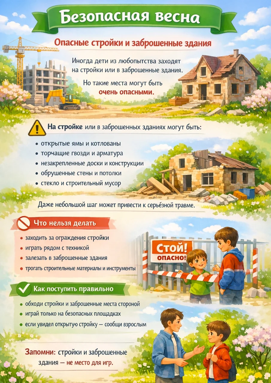 Стройки и заброшенные здания — не место для игр, даже ради любопытства.