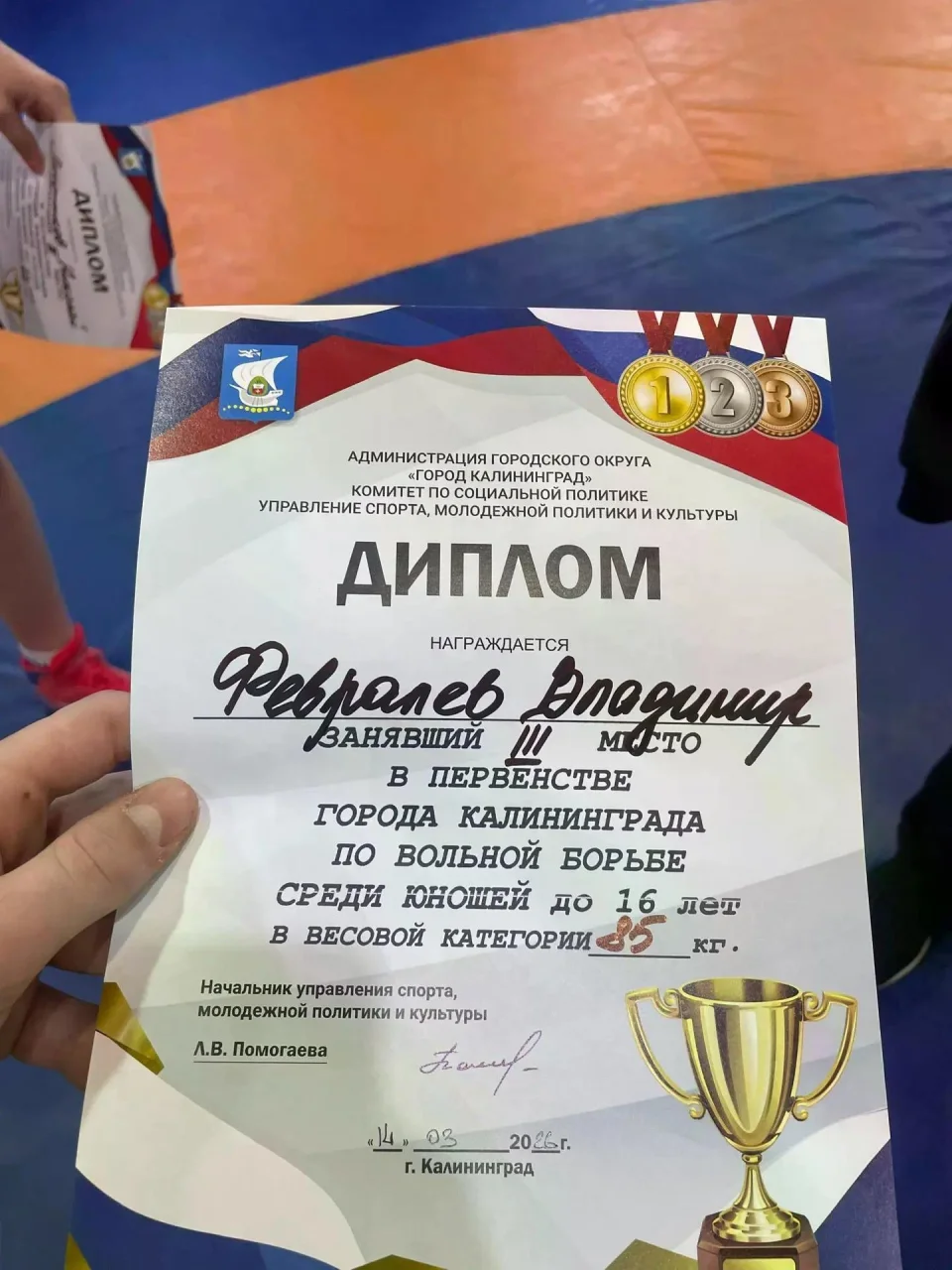 14 марта 2026 года в школе Олимпийского резерва имени братьев Белоглазовых (г. Калининград) состоялось Первенство по вольной борьбе среди юношей до 16 лет.